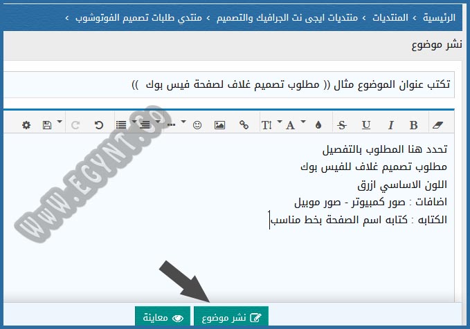 قم بالضغط على ايقونة نشر موضوع لعمل الخدمة كما فى الصورة